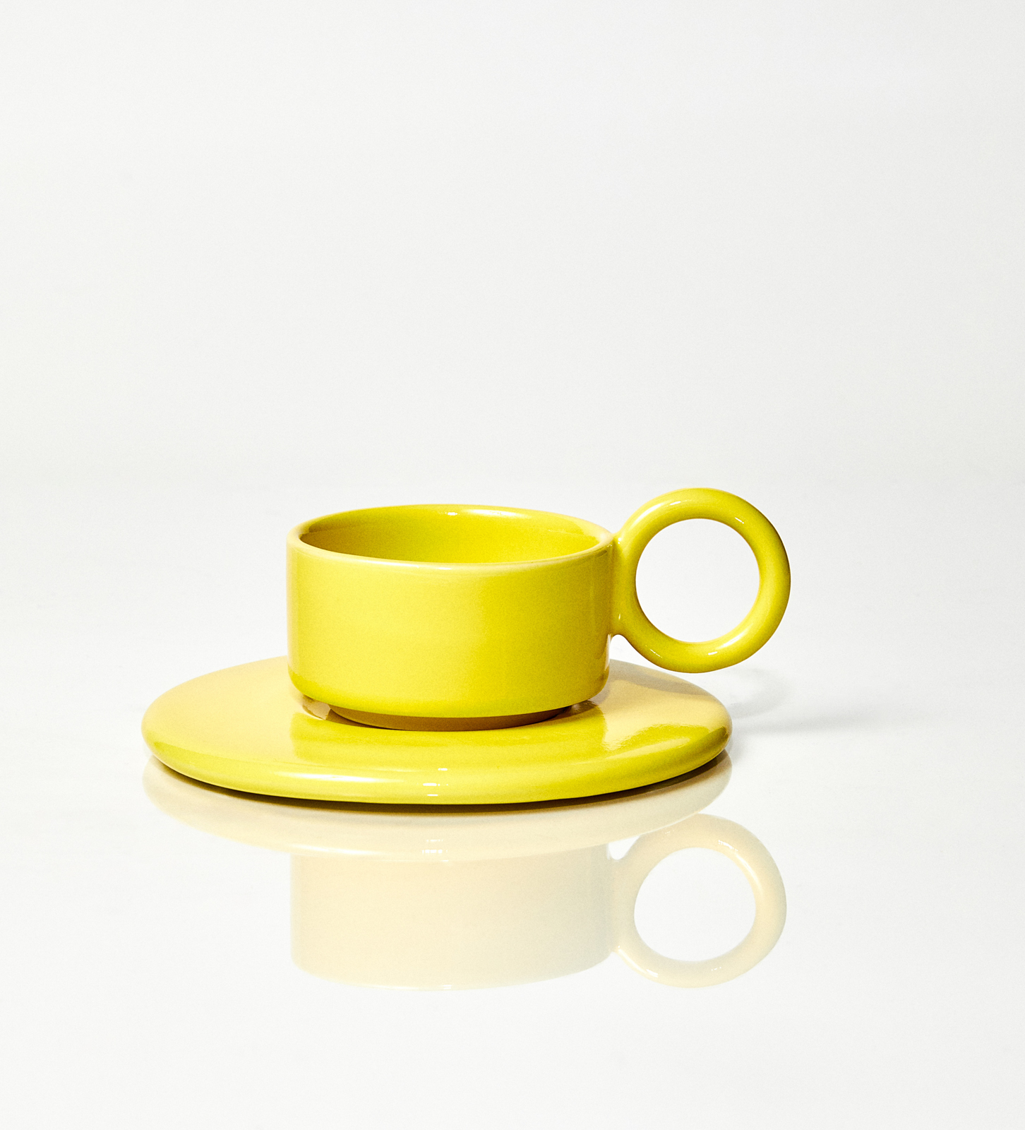 Filiżanka ceramiczna plus spodek Baub espresso / Acid Yellow/ ręcznie wytwarzana