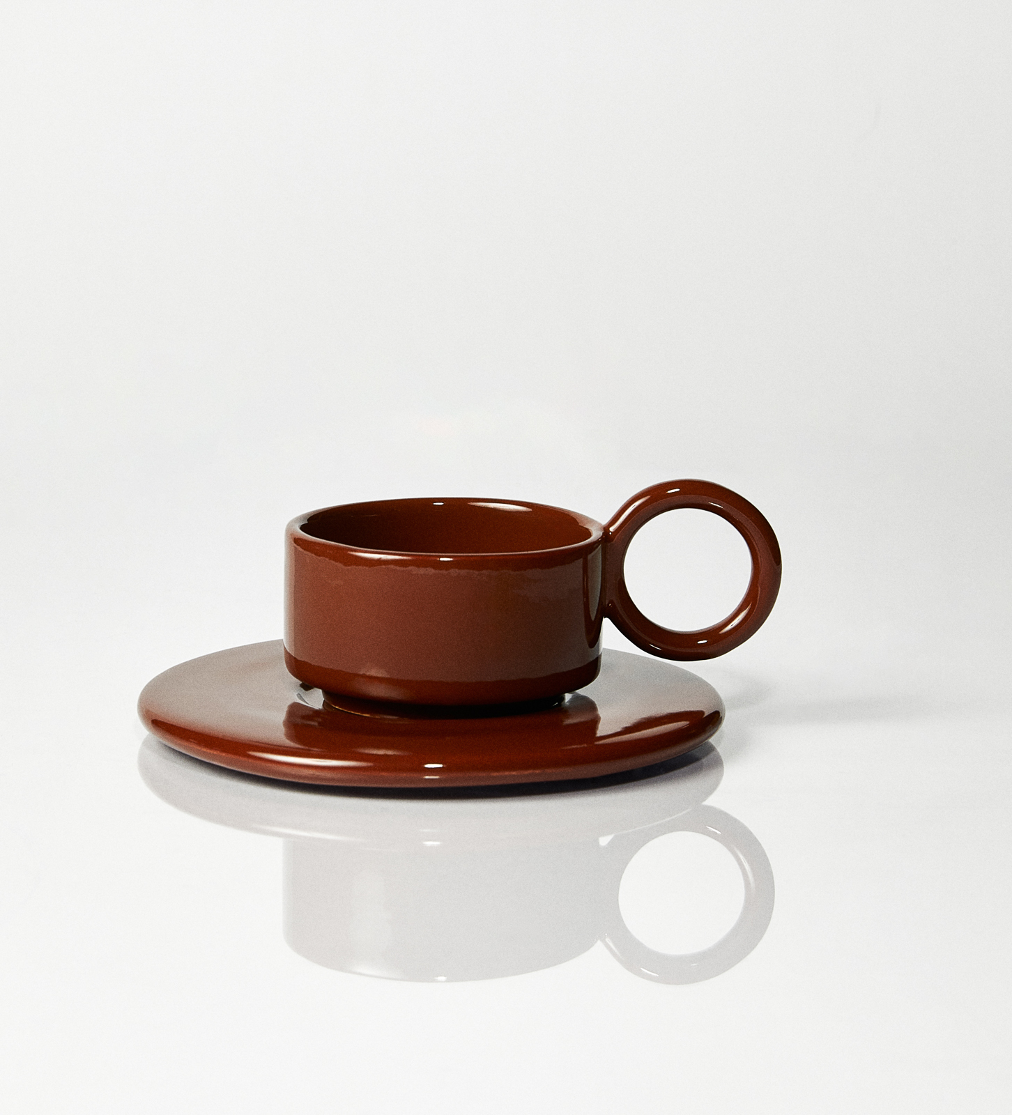 Filiżanka ceramiczna plus spodek Baub /Rosso/ ręcznie wywarzana