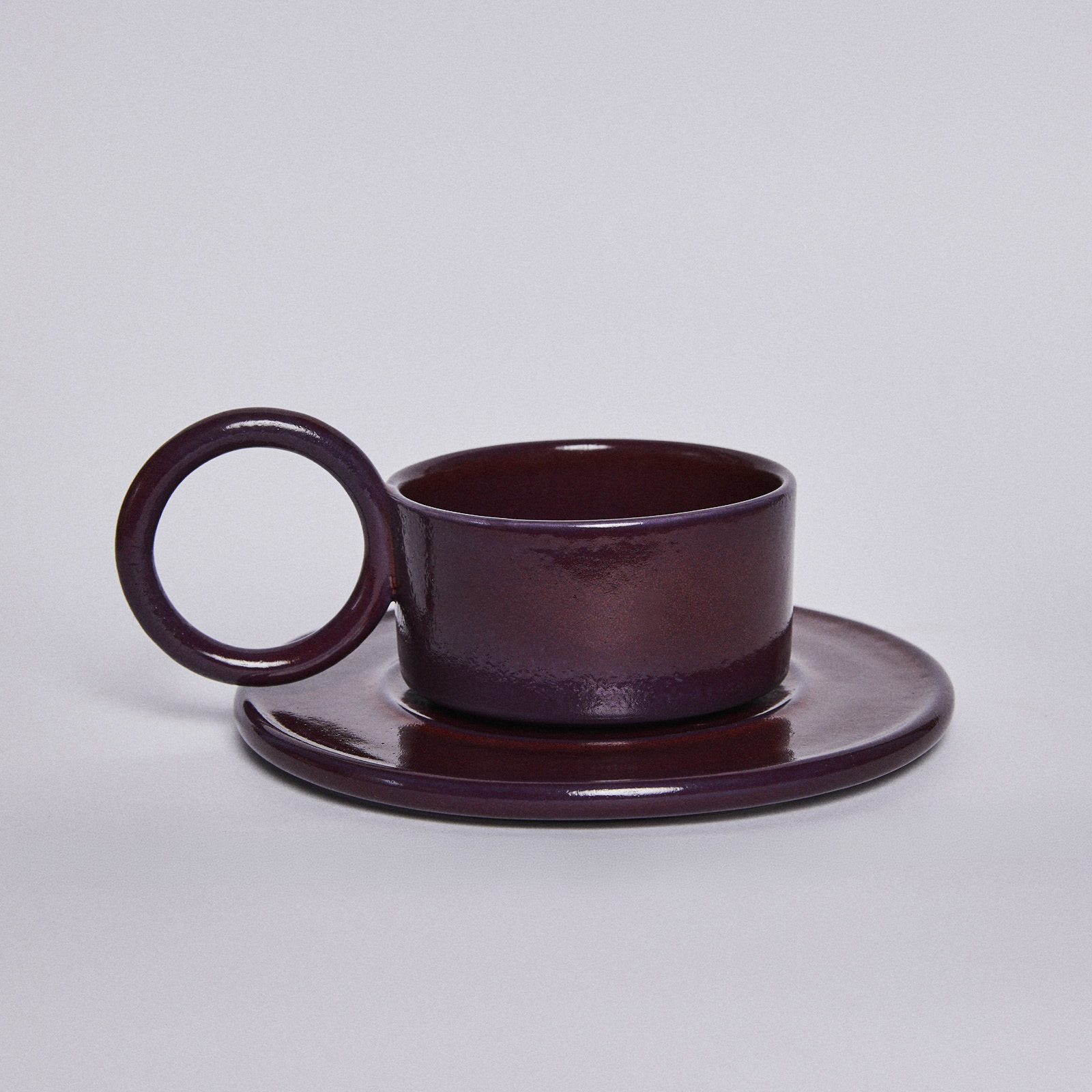 Filiżanka ceramiczna plus spodek Baub /Śliwkowy /Plum /ręcznie wytwarzany